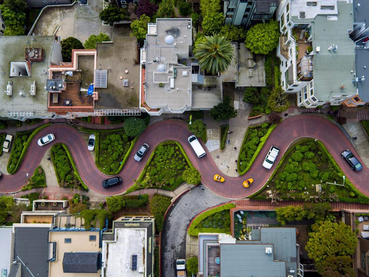 Αυτοκίνητα διασχίζουν έναν δρόμο γεμάτο έντονες κλειστές στροφές στο Σαν Φρανσίσκο