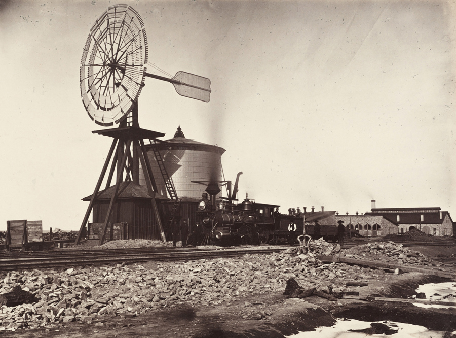 Ενας ανεμόμυλος στο Γουαϊόμινγκ. Αυτοί οι μύλοι που χρησιμοποιούνταν για να αντλήσουν νερό, ήταν πολύ χρήσιμοι στις κατασκευές καθώς ήταν αυτορυθμιζόμενοι και πολύ ανθεκτικοί