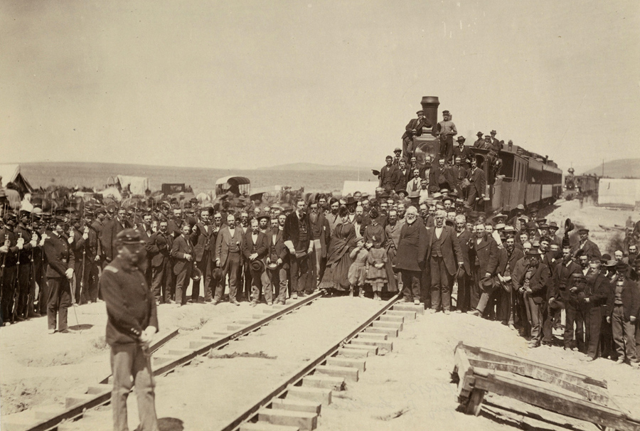 Επίσημοι παρακολουθούν την τοποθέτηση των τελευταίων σιδηροδρομικών γραμμών στη Γιούτα