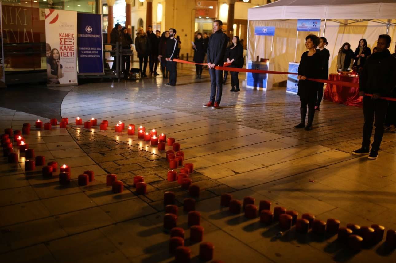 Μία εικόνα κόκκινης κορδέλας εμφανίστηκε τη νύχτα της 1ης Δεκεμβρίου σε δημόσια κτίρια σε Αθήνα και Θεσσαλονίκη. Το σύμβολο του αγώνα κατά του AIDS πρωταγωνίστησε σε πλήθος εκδηλώσεων που διοργανώθηκαν σε πολλές πόλεις της Ελλάδας. Στην Αθήνα φωταγωγήθηκαν το κτίριο της Βουλής και το Πανεπιστήμιο Αθηνών, ενώ στη Θεσσαλονίκη οι εκδηλώσεις έγιναν στην πλατεία Αριστοτέλους
