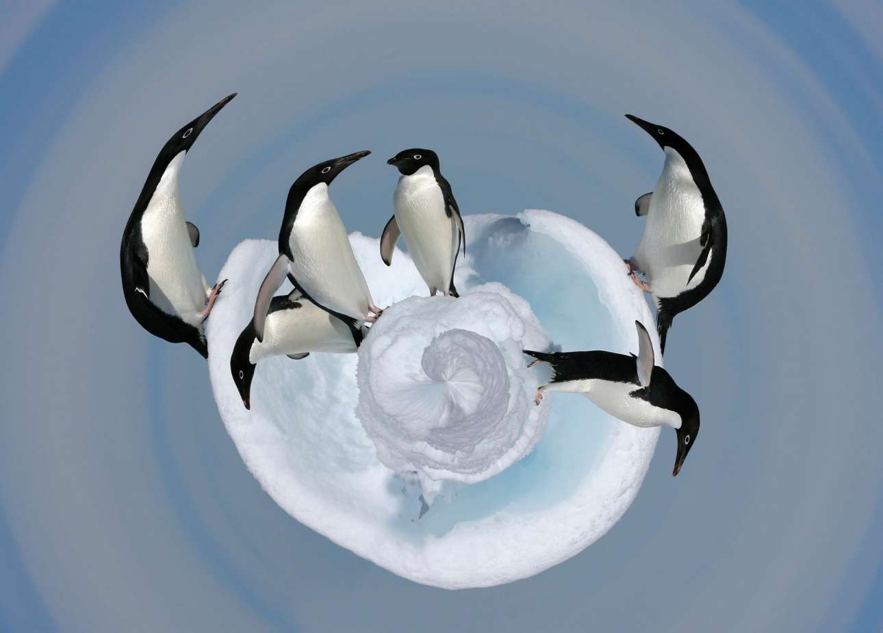Τρίτη θέση στην κατηγορία «Δημιουργική Εικόνα». «Φωτογράφισα έξι πιγκουίνους Adelie να στέκονται σε ένα μικρό παγόβουνο. Δεν μου πήρε πολύ χρόνο να συνειδητοποιήσω πως αν έκανα την εικόνα να μοιάζει σαν τον πλανήτη μας, θα ήταν μια πιο ισχυρή περιβαλλοντική δήλωση και θα απεικόνιζε εκπληκτικά την επίδραση της κλιματικής αλλαγής στα πολικά είδη ζώων» ανέφερε ο φωτογράφος