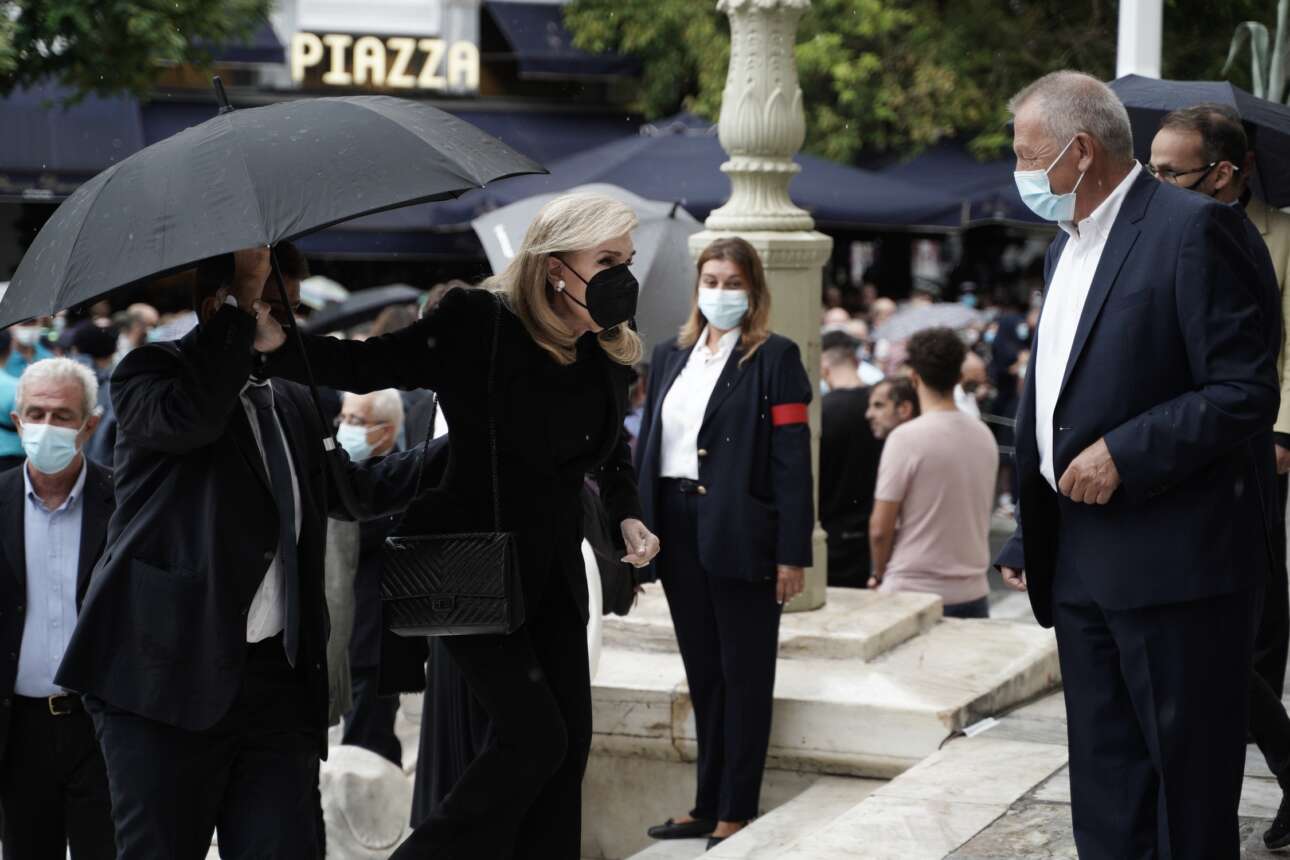 Η Μαριάννα Βαρδινογιάννη καταφθάνει στη Μητρόπολη, με τον Θανάση Παφίλη να παρακολουθεί