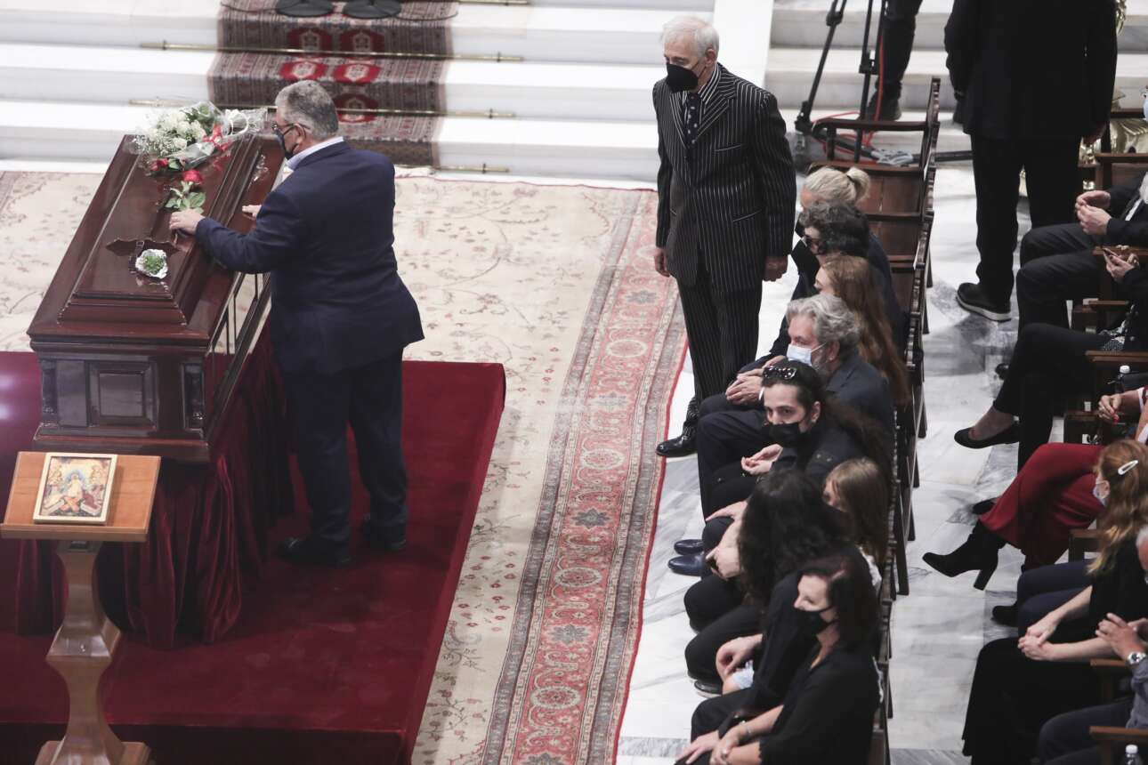 Το φέρετρο του Μίκη Θεοδωράκη βγαίνει από τον ναό για να μεταφερθεί στον Πειραιά και από εκεί στα Χανιά, όπου ο μεγάλος συνθέτης θα ταφεί
