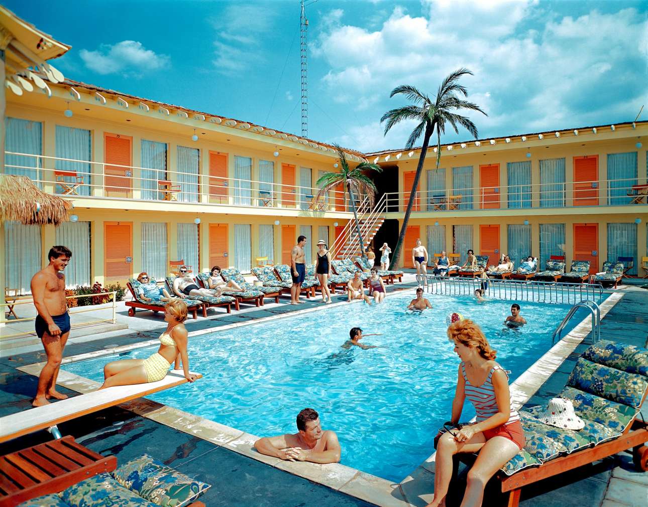 Τουρίστες απολαμβάνουν την πισίνα του μοτέλ «Ταϊτή» στο Νιου Τζέρσεϊ, κάπου μεταξύ του 1950 και του 1966