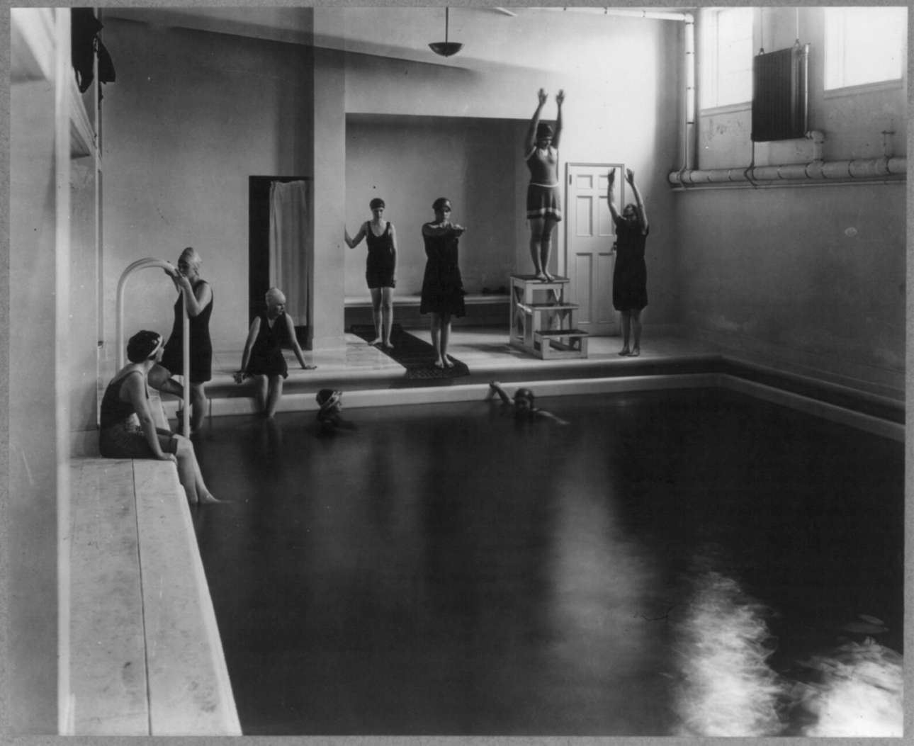 Κορίτσια στην πισίνα του κολεγίου θηλέων στην Ουάσινγκτον, φωτογραφημένα κατά τον Μεσοπόλεμο
