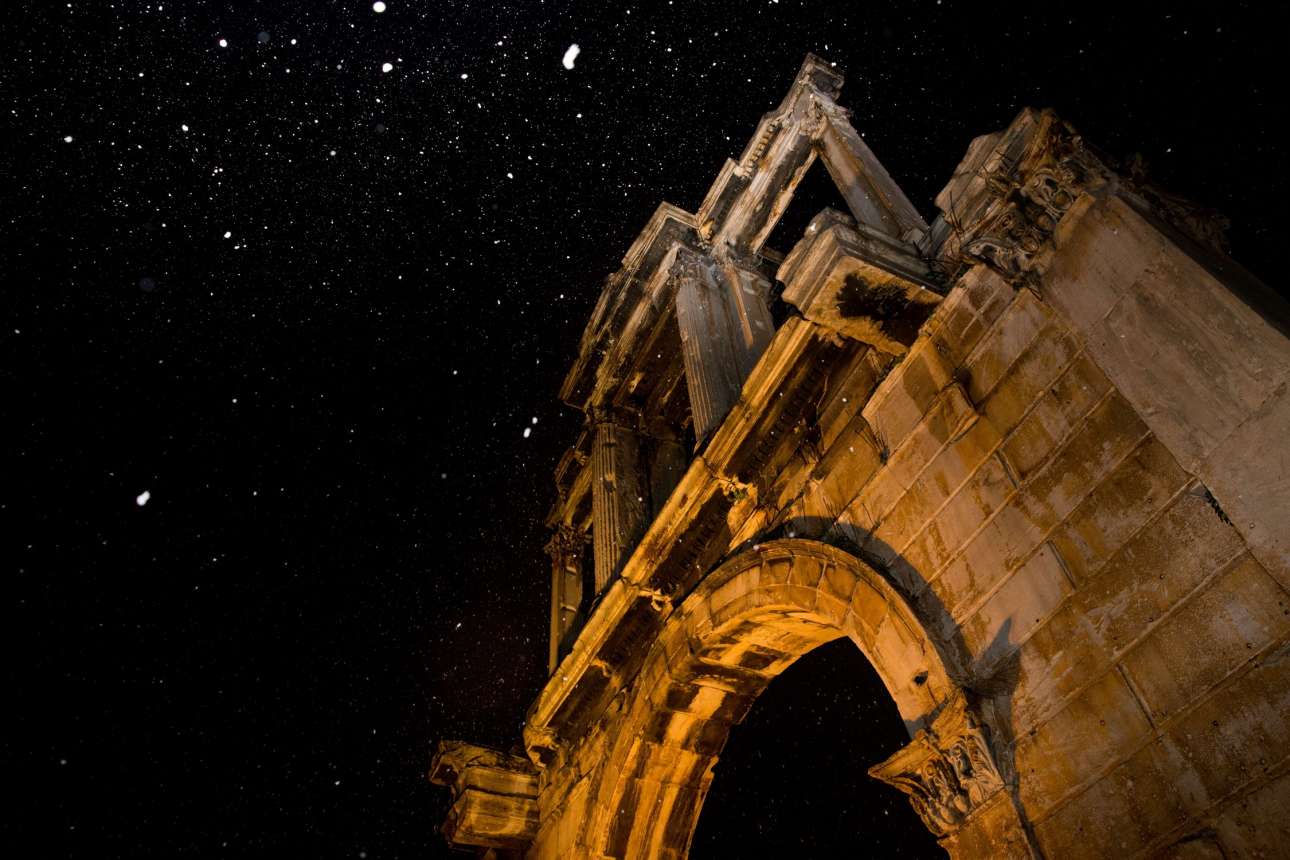 Η περφόμανς «Lagune» του ελβετού καλλιτέχνη, Denis Σαβάρη στη ταράτσα του Εθνικού Μουσείου Σύγχρονης Τέχνης με φόντο την Ακρόπολη, τον Μαΐο