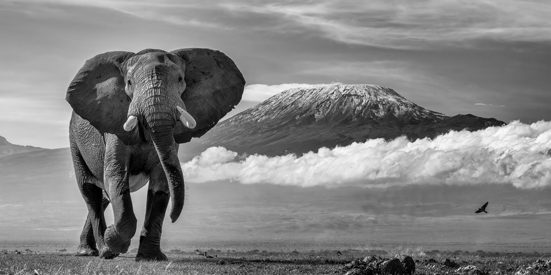 Ενας κολοσσιαίος ελέφαντας κάνει μια στροφή με χάρη, στο Κιλιμάντζαρο. 26η θέση (ισοπαλία) στην κατηγορία Ερασιτεχνική - Φύση / Τοπία. Εθνικό Πάρκο Αμποσέλι, Κένυα