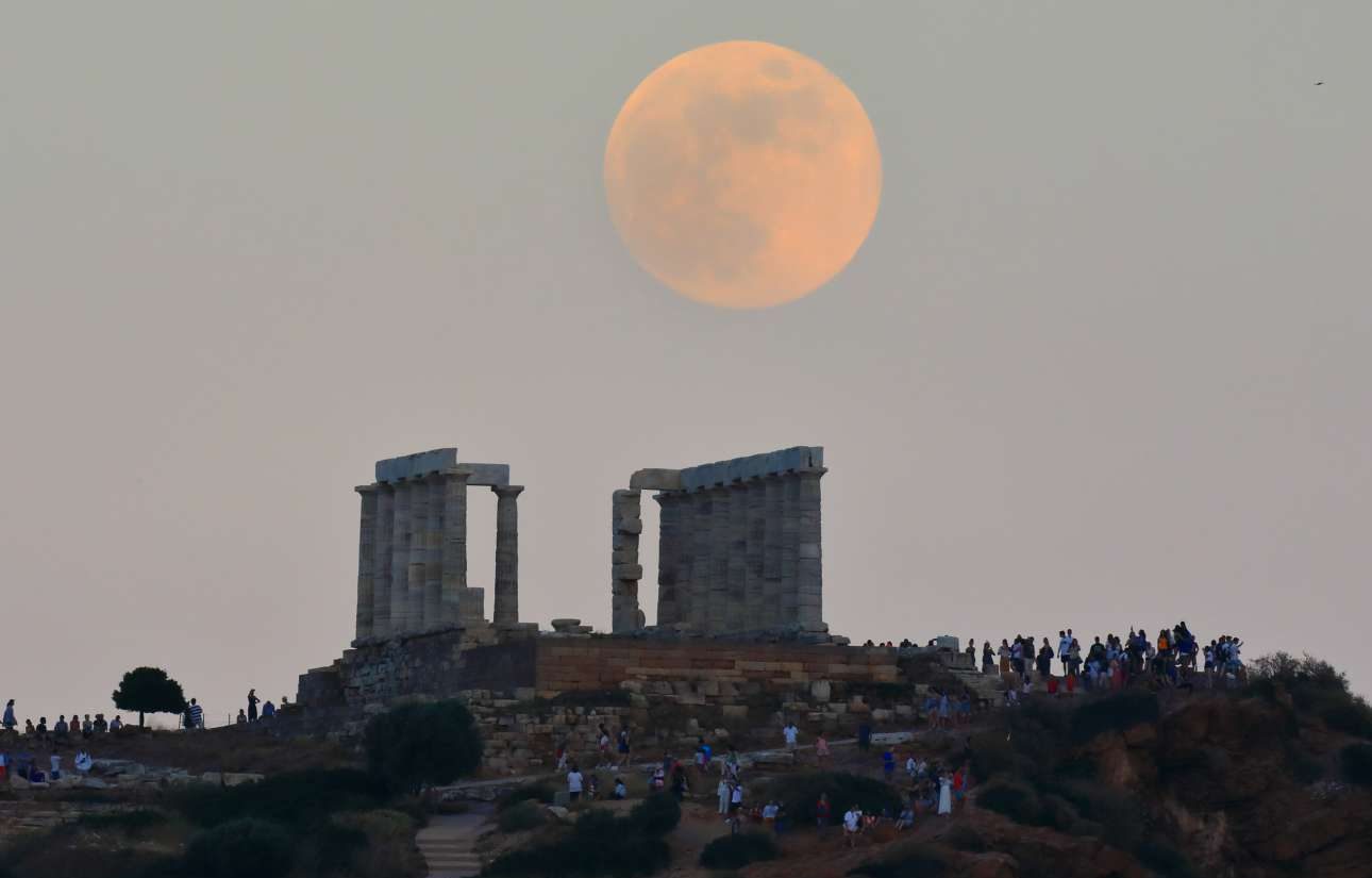 Οσοι έσπευσαν στο Σούνιο για λίγη δροσιά το απόγευμα της Δευτέρας είχαν το σπάνιο προνόμιο να απολαύσουν ένα μοναδικό θέαμα: η πρώτη Πανσέληνος του υπέροχου ελληνικού καλοκαιριού σε όλο της το μεγαλείο να φωτίζει με τη λάμψη της τον Ναό του Ποσειδώνα. Το σκηνικό έγινε ακόμα πιο όμορφο καθώς νύχτωνε
