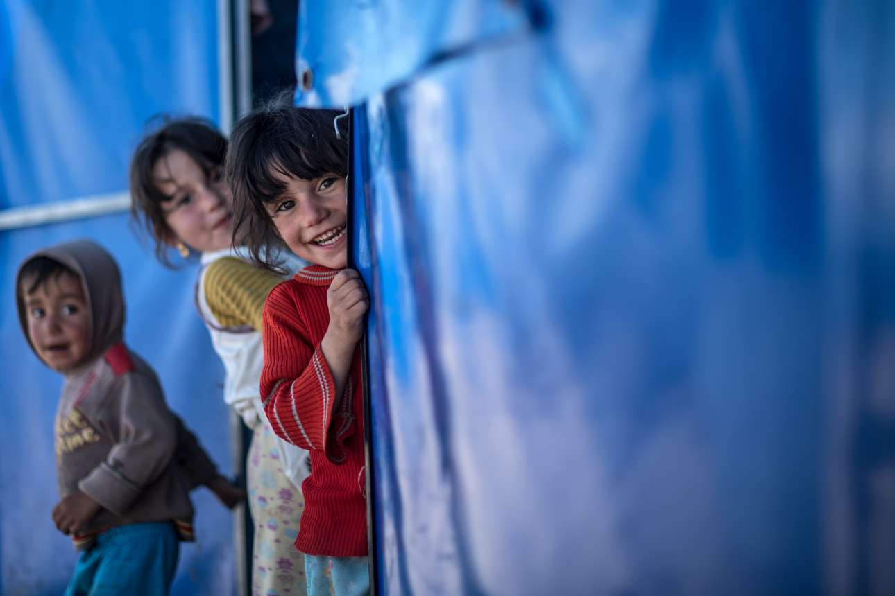 5 Απρ. Ανέμελα πρόσωπα και παιχνίδια σε έναν προσφυγικό καταυλισμό που φιλοξενεί κατοίκους της Μοσούλης. Περίπου 300.000 άτομα έχουν εγκαταλείψει την ιρακινή πόλη τους τελευταίους έξι μήνες, από τότε που άρχισε την επιχείρηση κατά του ISIS ο στρατός