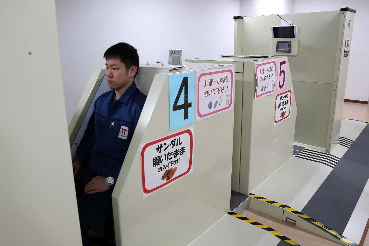 Μια καθημερινή ρουτίνα. Το ειδικό μηχάνημα σαρώνει τον εργαζόμενο στον πυρηνικό σταθμό Daiichi της Φουκουσίμα για ραδιενέργεια. Επειτα θα φορέσει τη στολή για να βγει έξω και να αρχίσει τις εργασίες για την απολύμανση της περιοχής