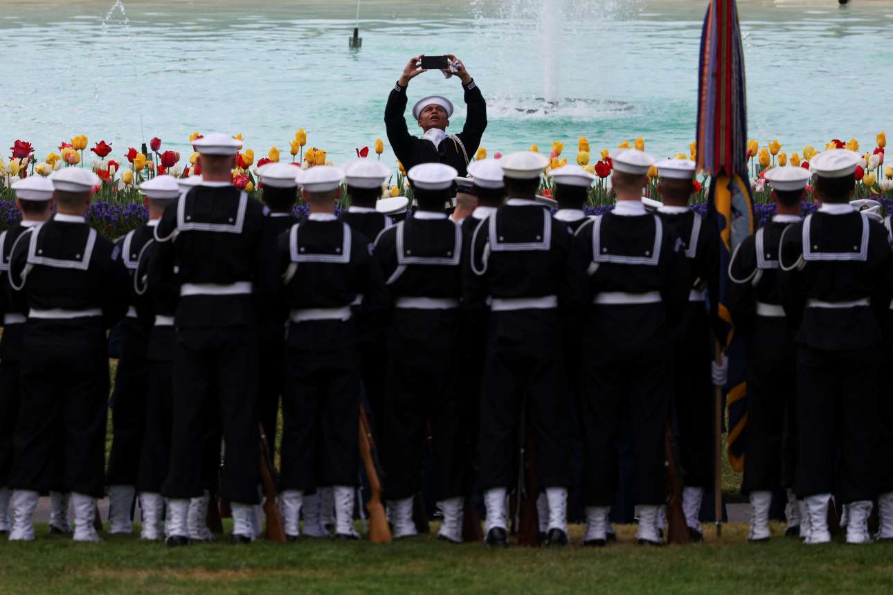 Αμερικανοί ναύτες στήθηκαν στον περίβολο του Λευκού Οίκου για να τους απαθανατίσει συνάδελφός τους – και βέβαια δεν ανήκουν στον 6ο Στόλο, όμως τόσες μπελαμάνες μαζεμένες ξυπνούν μνήμες προσοδοφόρου συμμαχικού... τουρισμού, ιδίως στους παλιούς Πειραιώτες