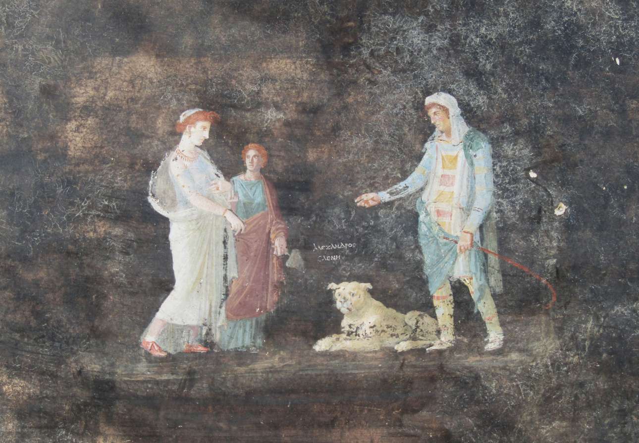 Ο Πάρις προπετής, η Ελένη επιρρεπής, ο σκύλος έκπληκτος: παραστάσεις Τρωικού Πολέμου (και των ντεσού) σε τοίχους οικίας τής Πομπηίας