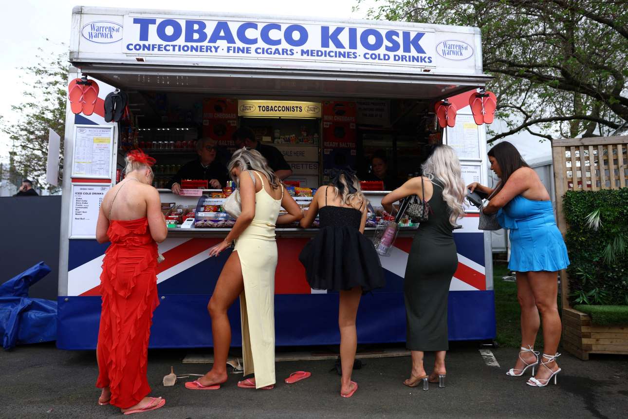 Ο βρετανικός αστισμός –ο οποίος έχει περί πολλού τις ιπποδρομίες– κάνει εκπτώσεις, λίαν εξυπηρετικές για τις φιλίππους: στις κούρσες του Λίβερπουλ στήθηκε κιόσκι για να πουλάει σαγιονάρες και να απαλλάσσει τις κυρίες από ψηλοτάκουνα και μυοσκελετικούς πόνους