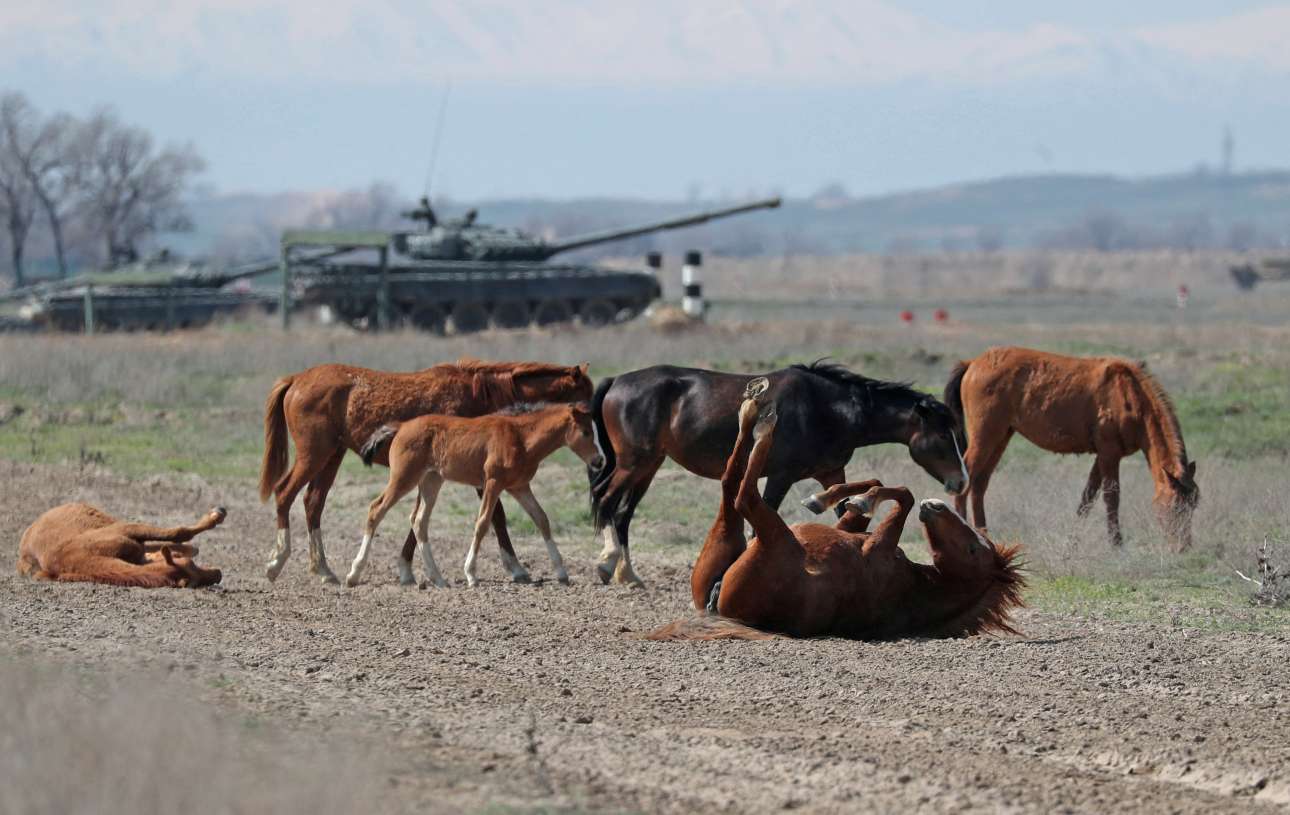 Πριν από τα Τεθωρακισμένα υπήρχε το Ιππικό, Οπλο αγχέμαχο μεν, με πλεονέκτημα μάχης, δε, σε σχέση με το Πεζικό (το κόκκινο διακριτικό του συμβολίζει το χυμένο αίμα του) – το κλικ από το πεδίο βολής του Καζακστάν ένωσε παρελθόν και παρόν, μάλλον αθέλητα