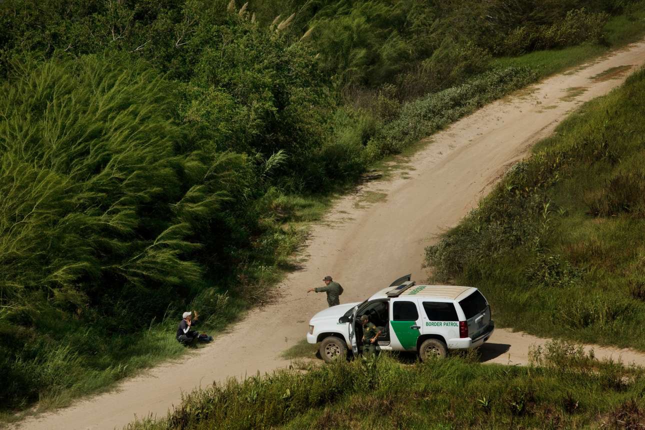 Ενας πρόσφυγας παραδίδεται στην αστυνομία των συνόρων. Ο συγκεκριμένος άντρας προσπάθησε να περάσει παράνομα τα σύνορα προς τις ΗΠΑ