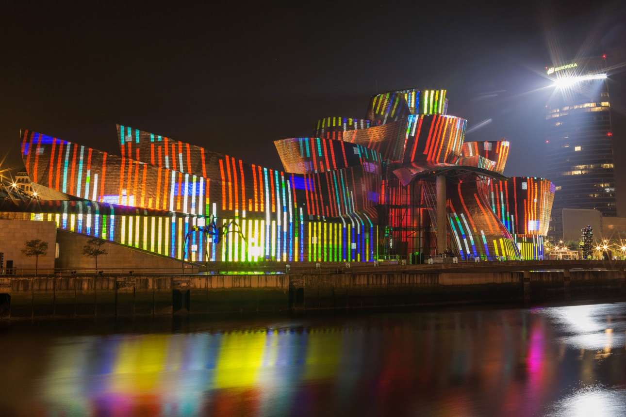 Το εντυπωσιακό Μουσείο Γκούγκενχαϊμ στο Μπιλμπάο της Ισπανίας συμπληρώνει είκοσι χρόνια λειτουργίας και το γιορτάζει με φαντασμαγορικό τρόπο. Το εμβληματικό κτίριο που φιλοξενεί σπουδαίους καλλιτέχνες μετατράπηκε το ίδιο σε ένα δημόσιο έργο τέχνης για τέσσερα βράδια, έως τις 14 Οκτωβρίου. Η βραβευμένη εταιρεία 59 Productions ανέλαβε να φωτίσει τις περίφημες μεταλλικές του καμπύλες με χαρτογραφικές προβολές τελευταίας τεχνολογίας, προσφέροντας ένα υπερθέαμα στους τυχερούς επισκέπτες