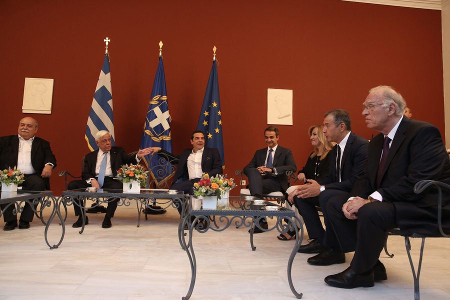 «Γεια μας!» Αλέξης Τσίπρας, Κυριάκος Μητσοτάκης, Φώφη Γεννηματά και Σταύρος Θεοδωράκης σε μια πρόποση