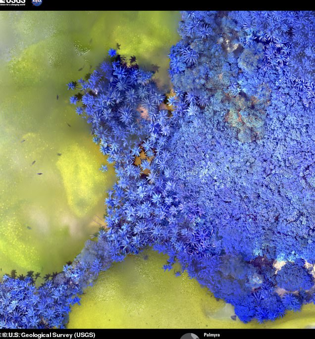 Σε απόσταση 1,600 χλμ. από την Χαβάι βρίσκεται η ατόλη Palmyra, ένα νησιωτικό απομεινάρι κάποιας αρχαίας υποθαλάσσιας ηφαιστειακής δραστηριότητας. Αμερικανικές περιβαλλοντικές υπηρεσίες έχουν εγκαταστήσει στην ατόλη επιστημονικούς και ερευνητικούς σταθμούς. Την συγκεκριμένη εικόνα δεν κατέγραψαν δορυφόροι αλλά drones με ειδικό εξοπλισμό ο οποίος δείχνει την βλάστηση της ατόλης με μπλε απόχρωση
