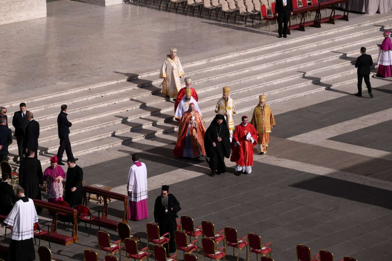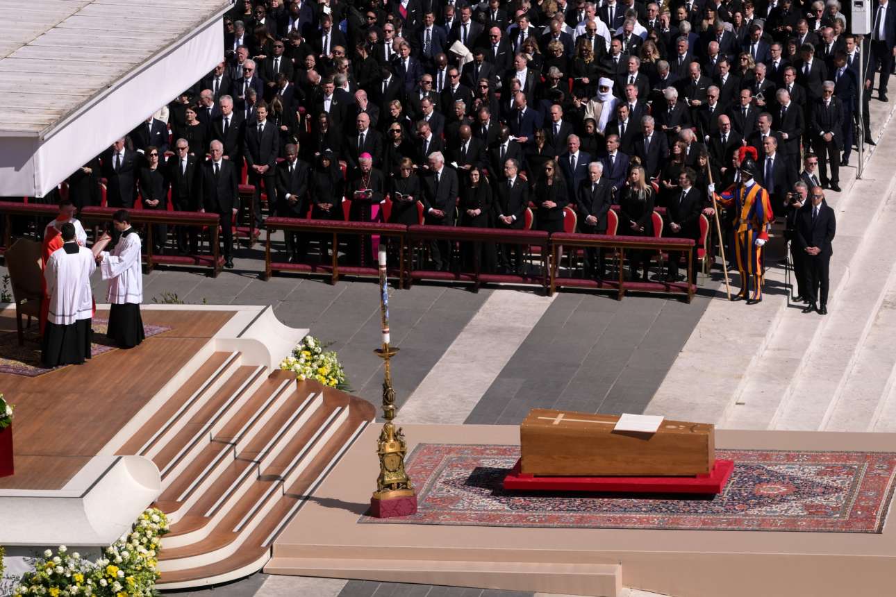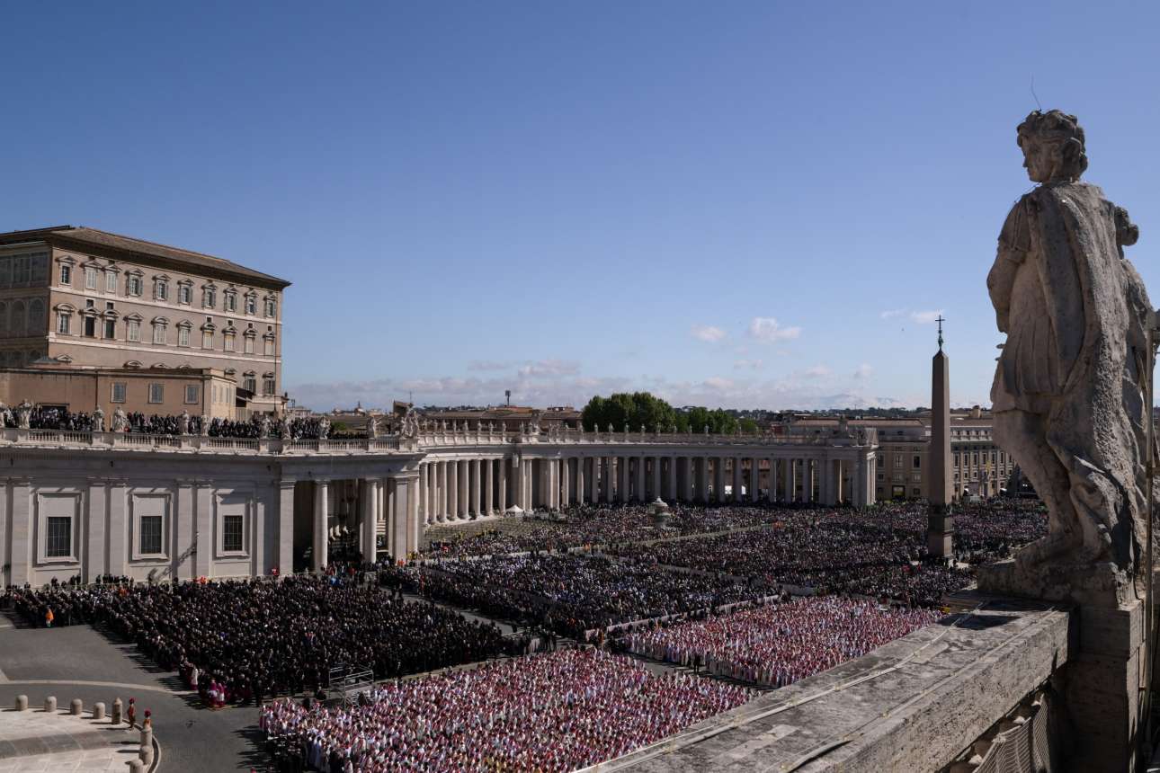 Ένα πρωτοφανές πλήθος, ιερωμένων, αρχηγών κρατών και κυβερνήσεων και ανώνυμων πιστών έγχει γεμίσει την πλατεία του Αγίου Πέτρου
