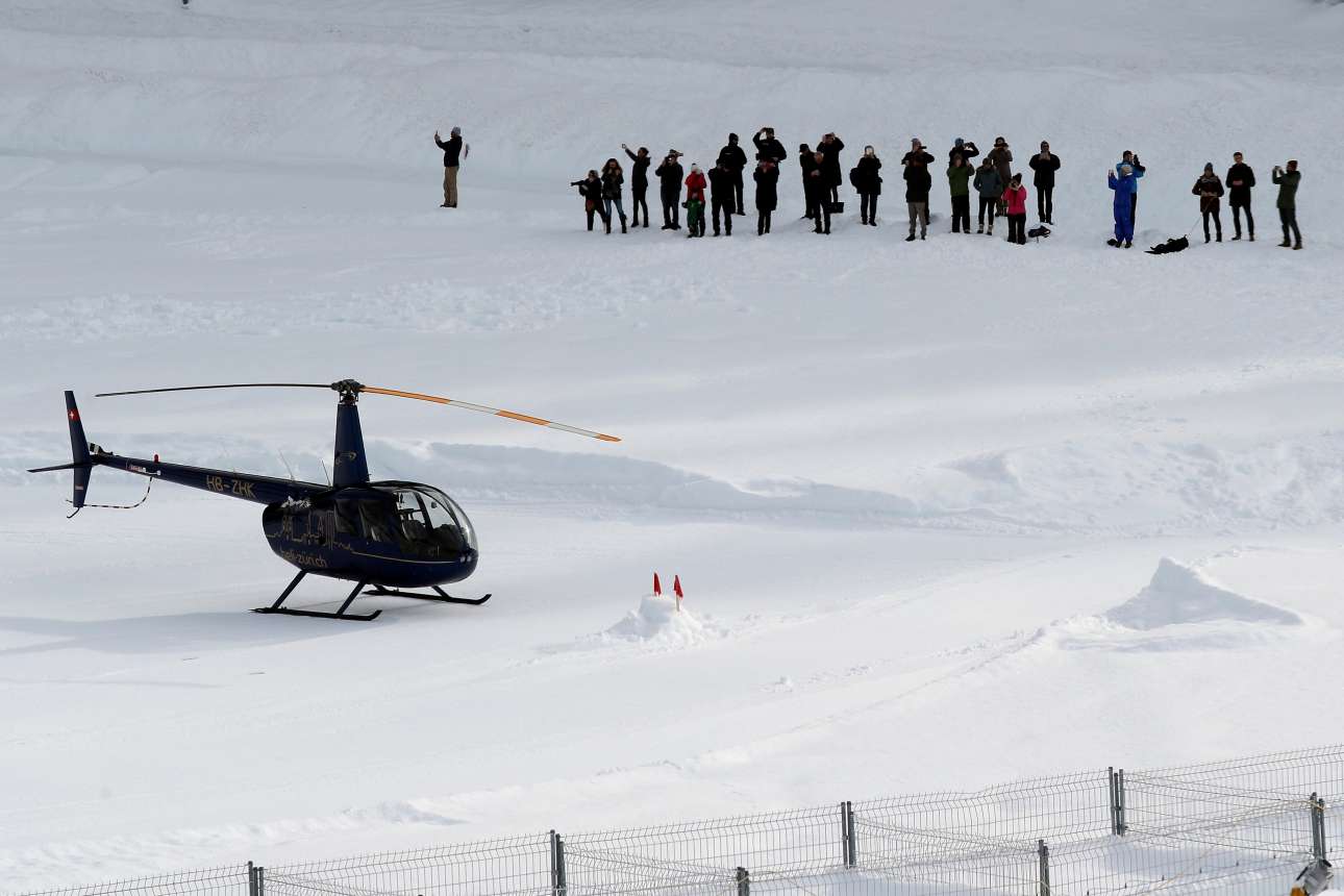 Ο Ντόναλντ Τραμπ μπαίνει στο προεδρικό ελικόπτερο και κατευθύνεται δυτικά προς το Νταβός