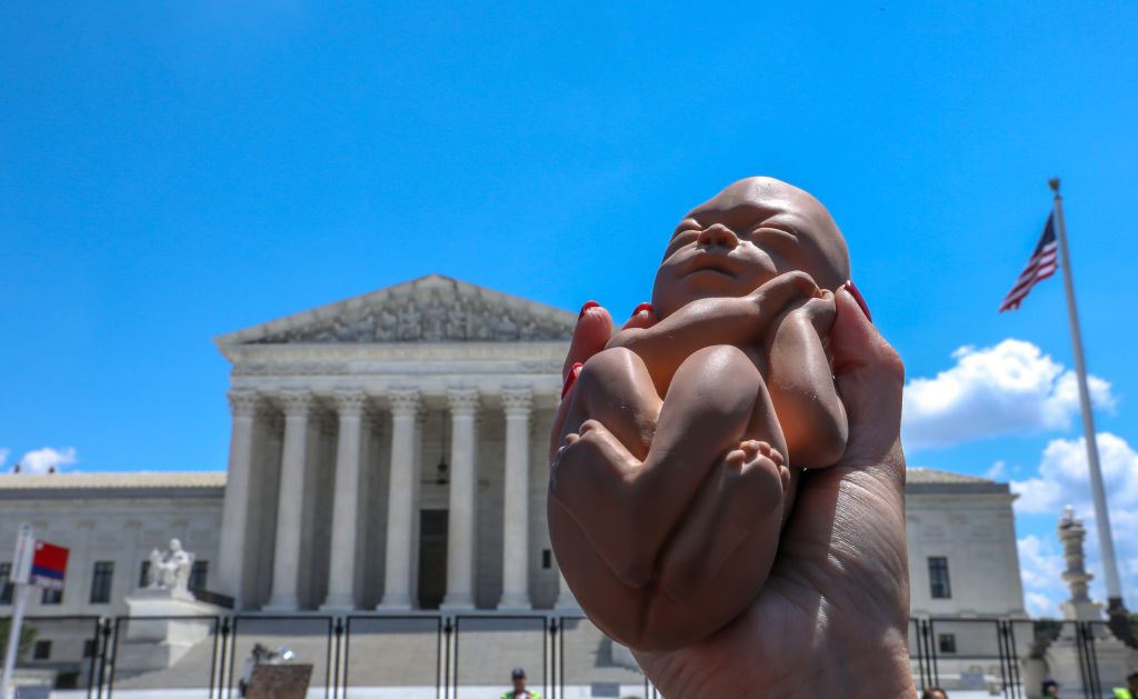 Υπήρχαν και κάποιοι, λίγοι, που χάρηκαν με την απόφαση, όπως η διαδηλώτρια κατά των αμβλώσεων με το πλαστικό μωρό στο χέρι