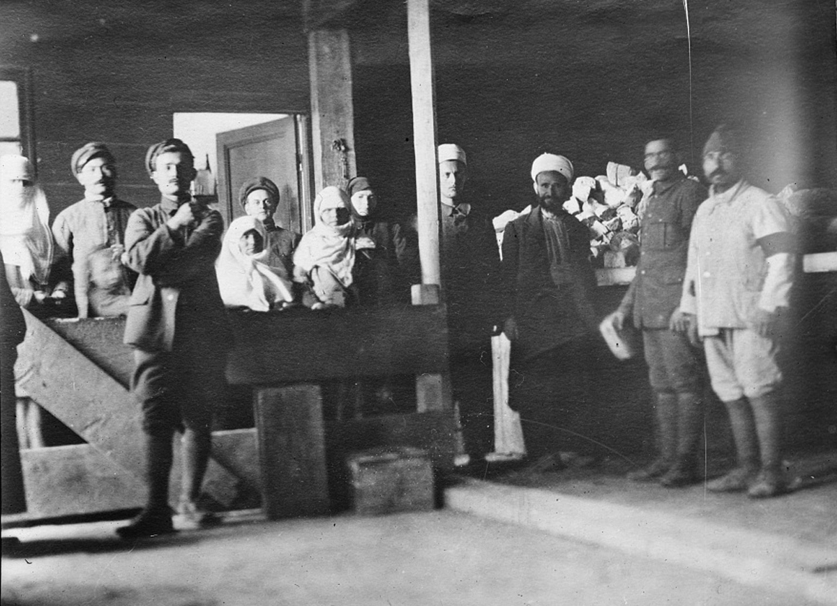 Χριστιανοί, μουσουλμάνοι και εβραίοι περιμένουν στην ουρά για μια μερίδα ψωμί σε κέντρο του Αμερικανικού Ερυθρού Σταυρού, το οποίο είχε εγκατασταθεί σε παλιές τουρκικές καπναποθήκες της Καβάλας