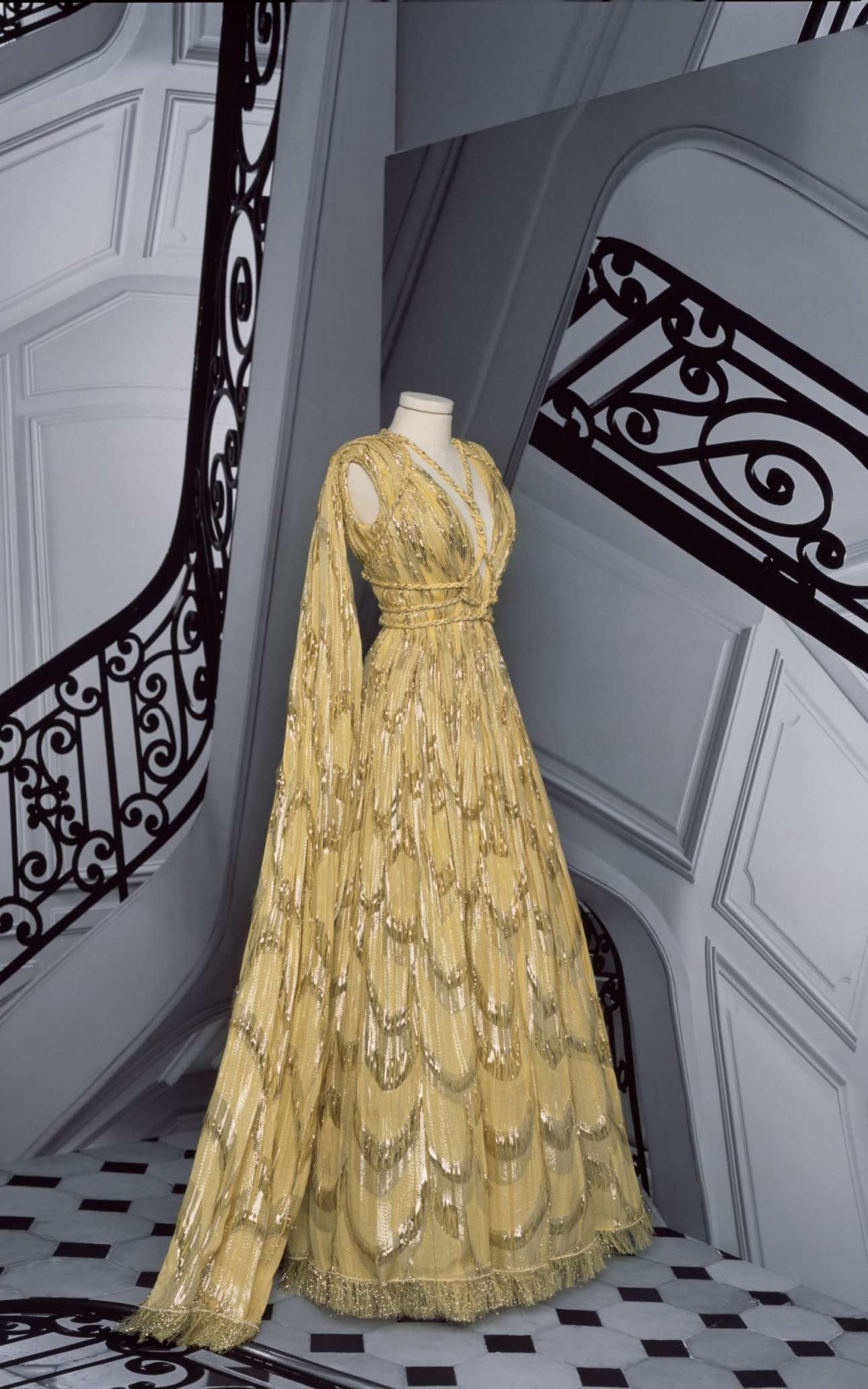 Η καλλιτεχνική διευθύντρια του Christian Dior Μαρία Γκράτσια Κιουρί οραματίζεται τη γυναίκα ως μία σύγχρονη γοργόνα με αυτό το χρυσό, κεντημένο με παγιέτες φόρεμα