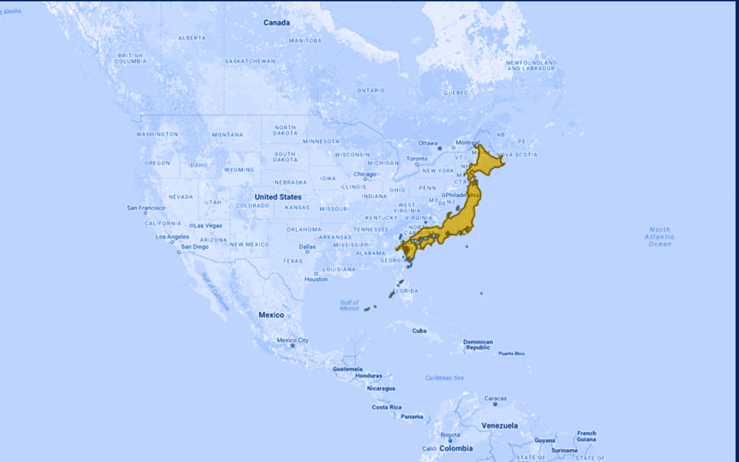 Το ίδιο φαινόμενο με την Χιλή συμβαίνει και με την Ιαπωνία η οποία έχει πολύ μεγαλύτερη έκταση από αυτή που φαίνεται στον χάρτη και καλύπτει χώρο όσο ολόκληρα σχεδόν τα ανατολικά παράλια των ΗΠΑ.