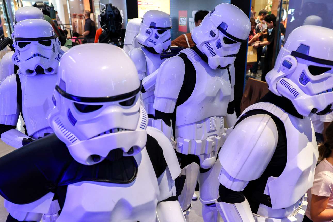 Σε «πεζοναύτες» των φιλμ «Star Wars» μασκαρεύτηκαν αυτοί οι έξι λεβέντες επ’ ευκαιρία της «διεθνούς ημέρας Star Wars», αφού στον πλανήτη μας… σέρνεται και τέτοια γριπούλα – καρέ από την Μπανγκόκ