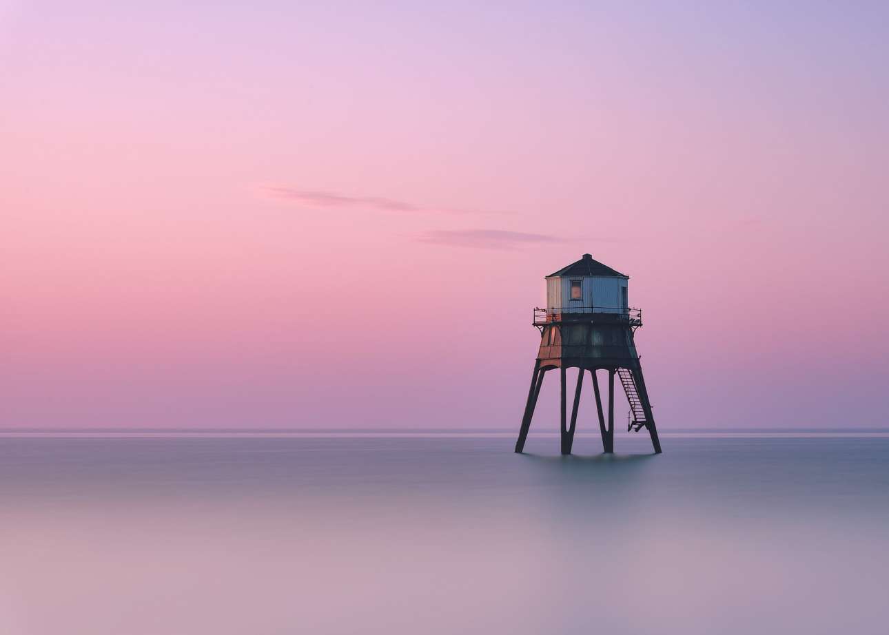 Τραβηγμένη νωρίς το πρωί στο Ντόβερκορτ του Εσεξ, στην Αγγλία, η φωτογραφία του Τζει Πι Απλτον αποκαλύπτει έναν ιστορικό φάρο του 1800 λουσμένο στο ρόδινο χρώμα του πρωινού