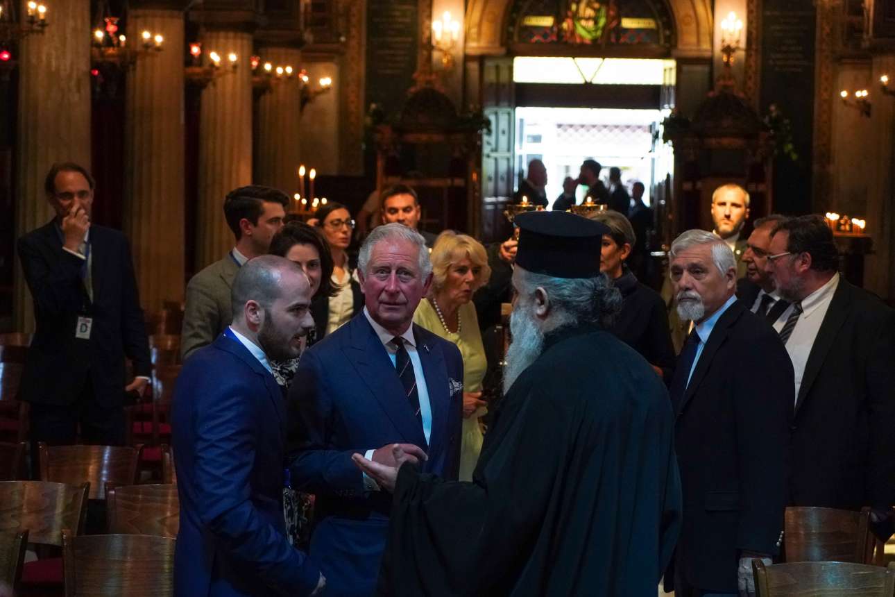 Ο πρίγκιπας συζητά με τον πατέρα Συνοδινό, ιερέα στην εκκλησία της Παναγίας της Καπνικαρέας
