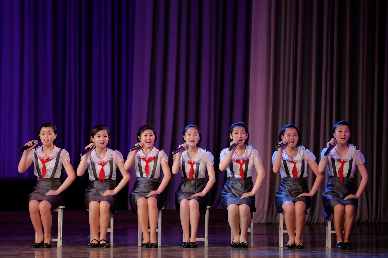 Δεν υπάρχουν διακρίσεις στη Βόρεια Κορέα - όλοι φορούν τα ίδια. Και χειροκροτούν ομοιόμορφα, χωρίς να γελούν. Είναι οι νεαροί θεατές παράστασης που δόθηκε στο Παλάτι των Παιδιών της Πιονγιάνγκ, μία μέρα πριν από την έναρξη του συνεδρίου του Εργατικού Κόμματος