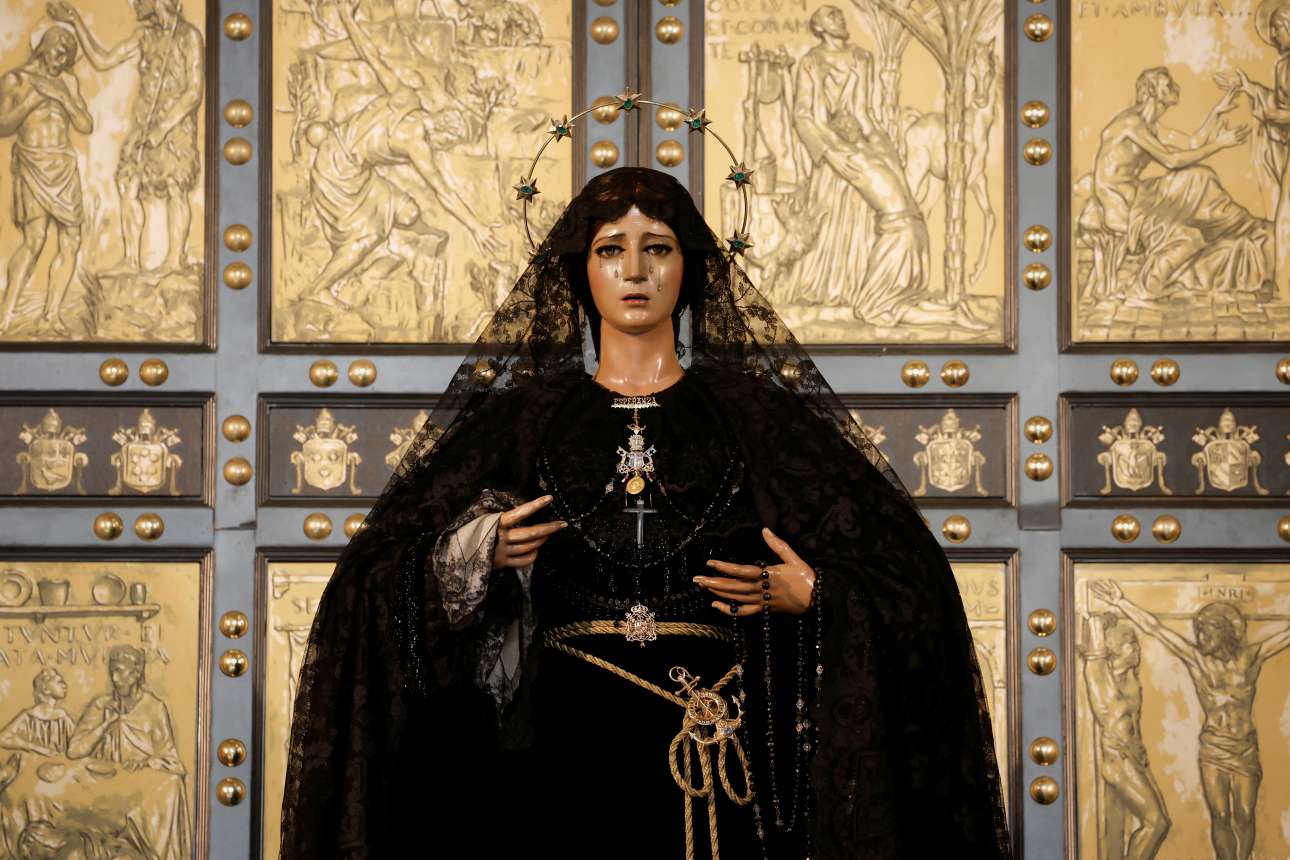 Η Παναγία ντύθηκε στα μαύρα. Το άγαλμα της Παναγίας της La Esperanza στολίστηκε πένθιμα στη διάρκεια ενός αφιερώματος στον πάπα Φραγκίσκο, στη Μάλαγα της Ισπανίας