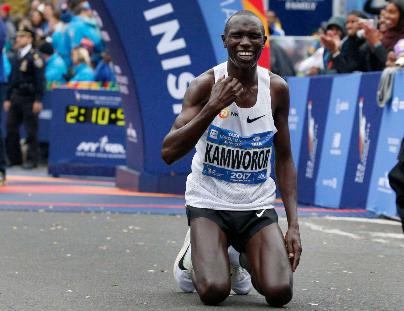 Θριαμβευτής. Ο κενυάτης Τζέφρι Κιπσάνγκ Καμγουορόρ συγκινημένος, λίγο μετά τον τερματισμό του