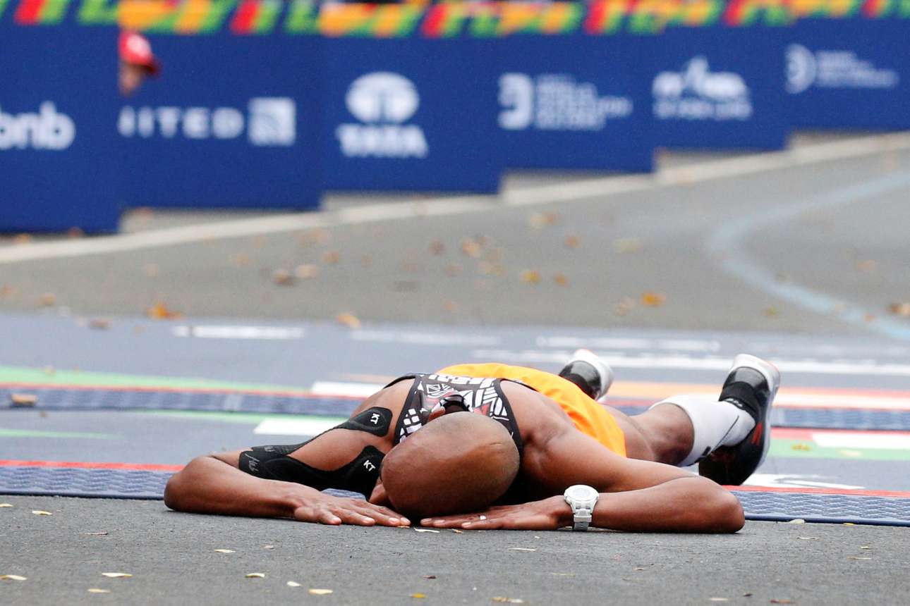 Η κατάρρευση λίγο μετά την υπερπροσπάθεια. Ο Μεμπ Κεφλεζίγκι υποβασταζόμενος λίγο μετά τον τερματισμό