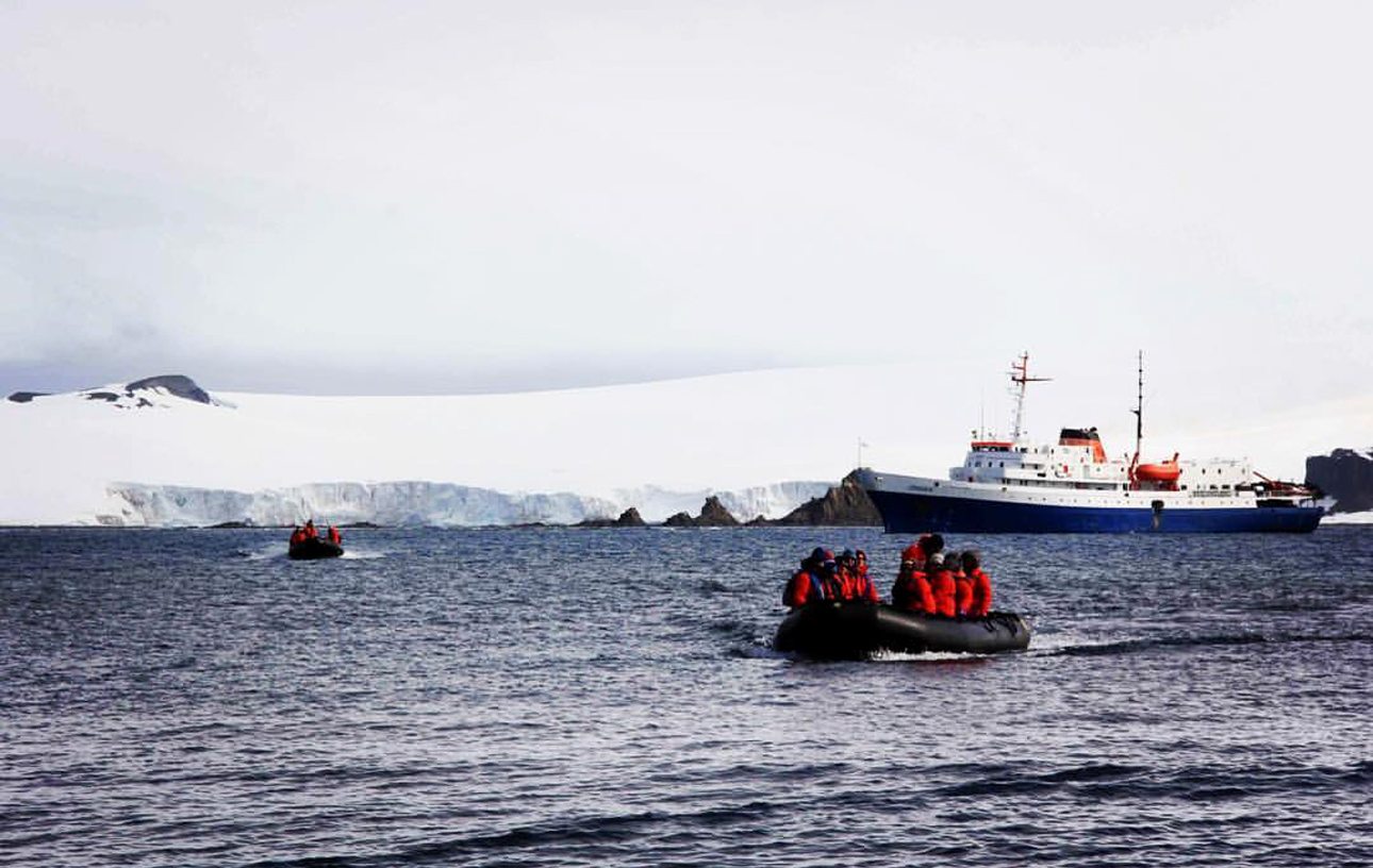 Η ερευνητική αποστολή απομακρύνεται από το μητρικό σκάφος «MV Ushuaia» για την πρώτη αποβίβαση στη νοτιότερη ήπειρο της Γης