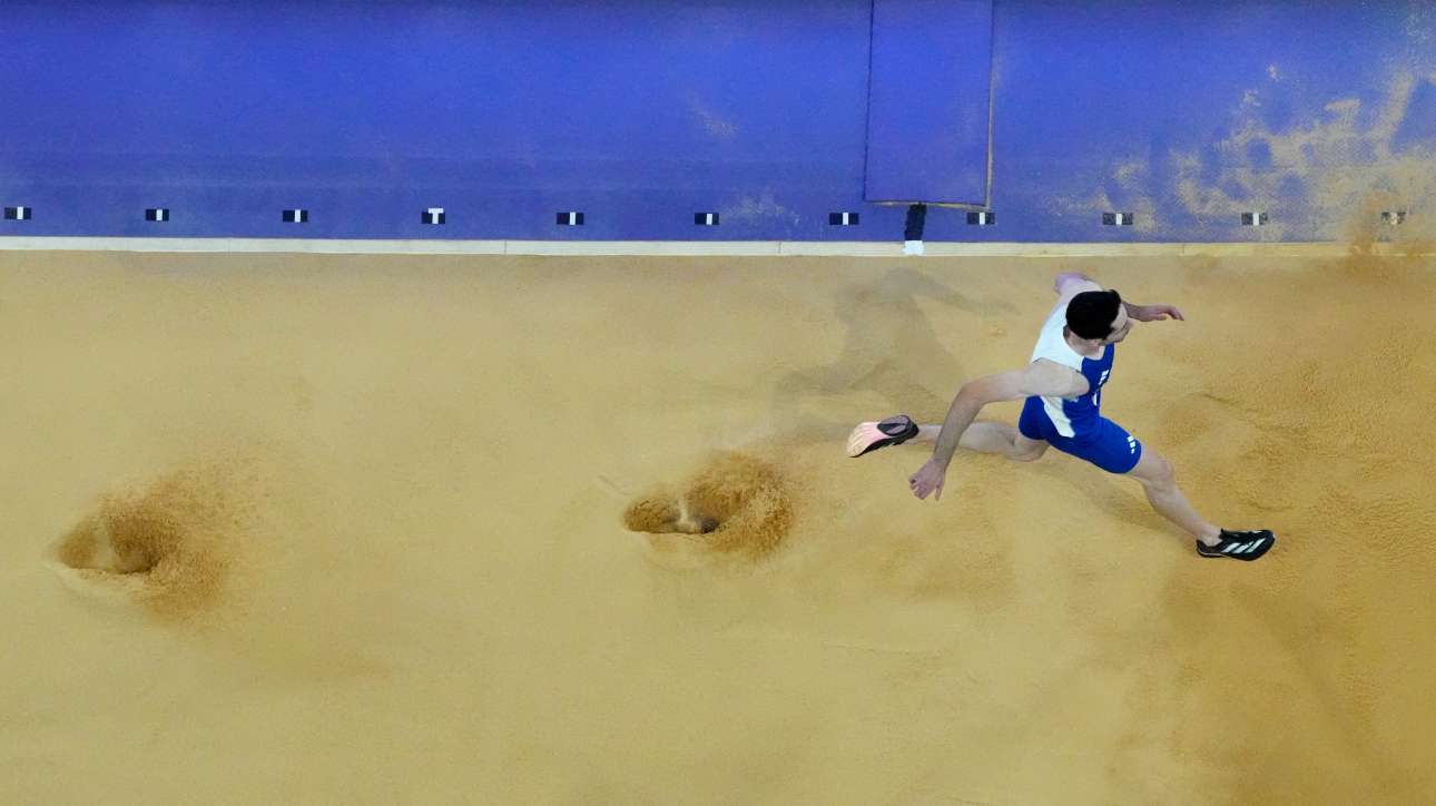 Βλέποντας τα μέτρα να περνούν. Στη δεύτερη προσπάθειά του ο Τεντόγλου είχε επίδοση 8,48 μ., που του χάρισε και την πρώτη θέση