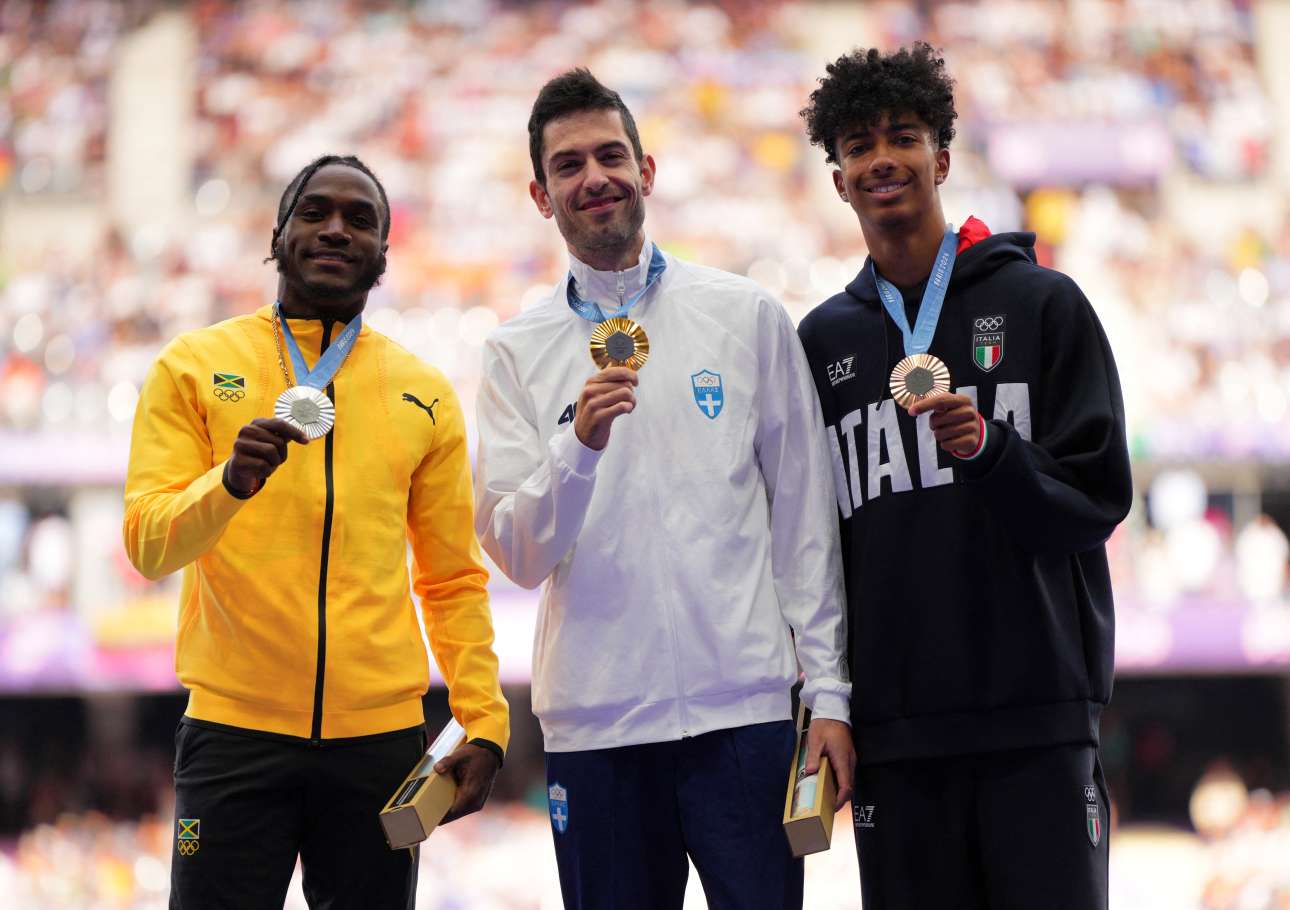 Η τριάδα των μεταλλίων: ο «ασημένιος» Γουέιν Πίνοκ από την Τζαμάικα, ο «χρυσός» Μίλτος και ο «χάλκινος» Ιταλός Ματία Φουρλάνι