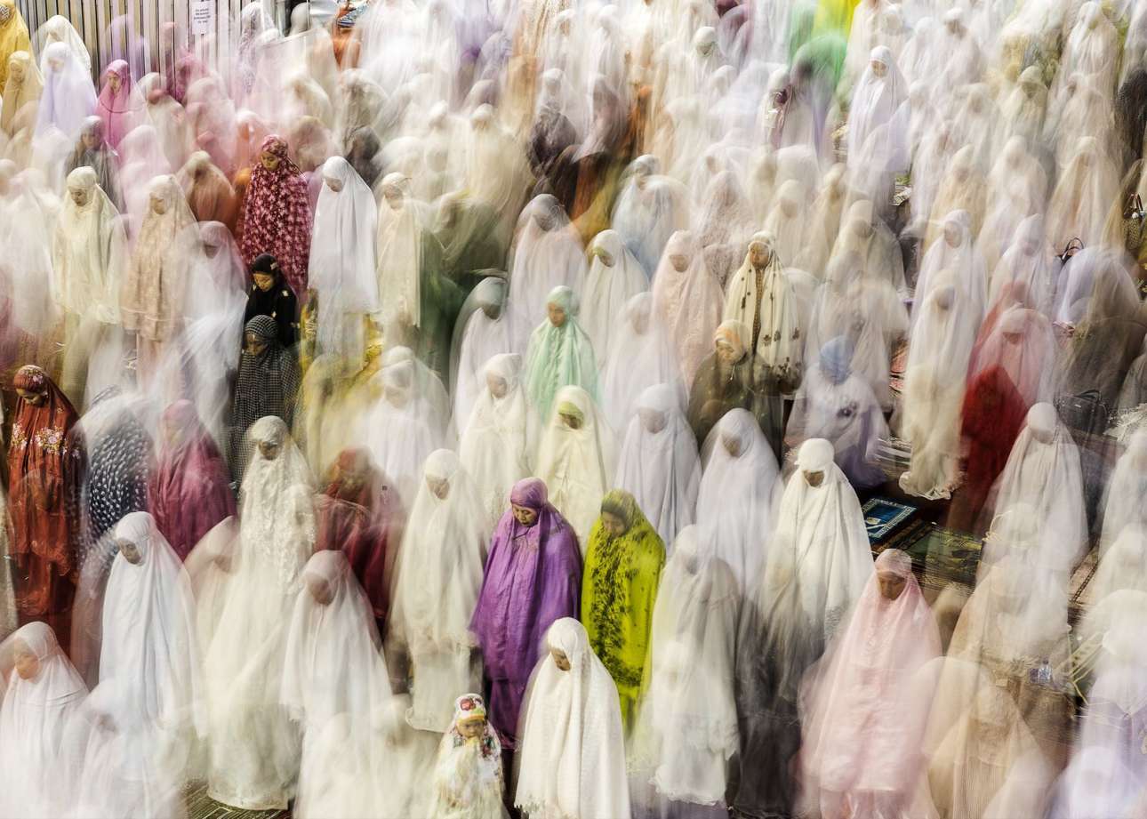 «Προσευχές του Ραμαζανιού». Γυναίκες προσεύχονται στο τέμενος Ιστικλάλ της Τζακάρτας, το μεγαλύτερο στη νοτιοανατολική Ασία, κατά τη διάρκεια του Ραμαζανιού. Η τεχνική της μακράς έκθεσης προσδίδει μία μεταφυσική αίσθηση στην εκπληκτική αυτή φωτογραφία