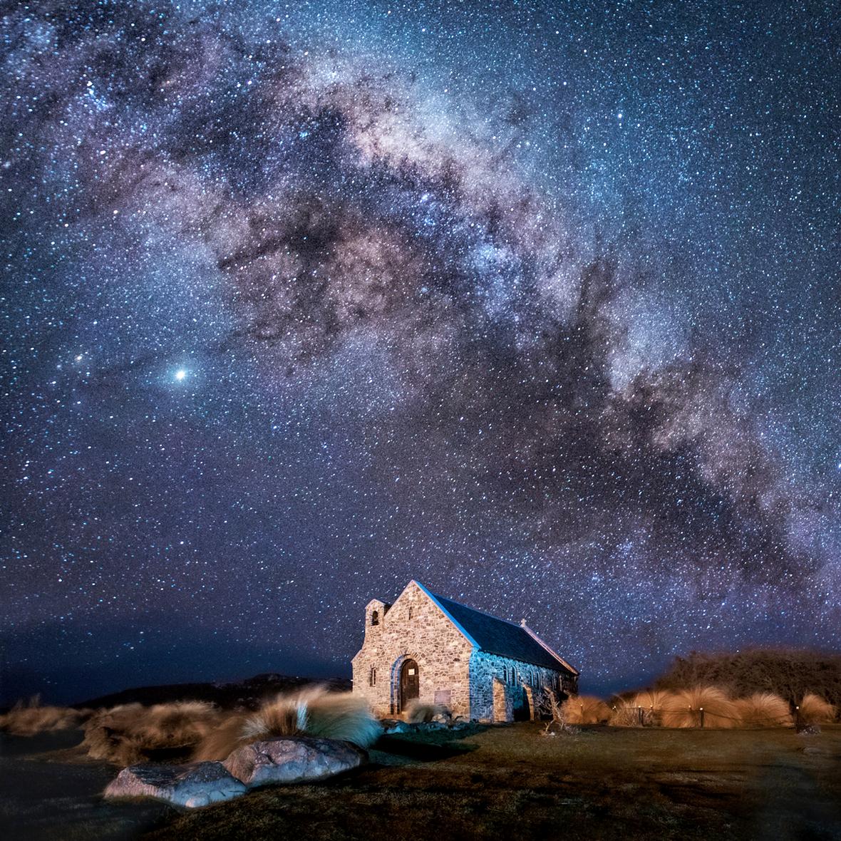 Η Εκκλησία του Καλού Ποιμένα κάτω από τα αστέρια. «Ο ουρανός του Νότιου Ημισφαιρίου είναι απίστευτα όμορφος. Πρέπει να πάτε στο άλλο άκρο του πλανήτη για να τον δείτε με τα μάτια σας. Δεν έχει σημασία που η πρόβλεψη καιρού υποσχέθηκε καθαρό ουρανό, αλλά έξω από το παράθυρο είχε παγωμένη βροχή και ισχυρούς ανέμους. Τέτοιος ουρανός αξίζει την αναμονή. Η υπομονή ανταμείβεται πάντα. Τα σύννεφα σύντομα διαλύθηκαν και άνοιξαν το δρόμο για το Διάστημα» γράφει στη συνοδευτική λεζάντα η φωτογράφος