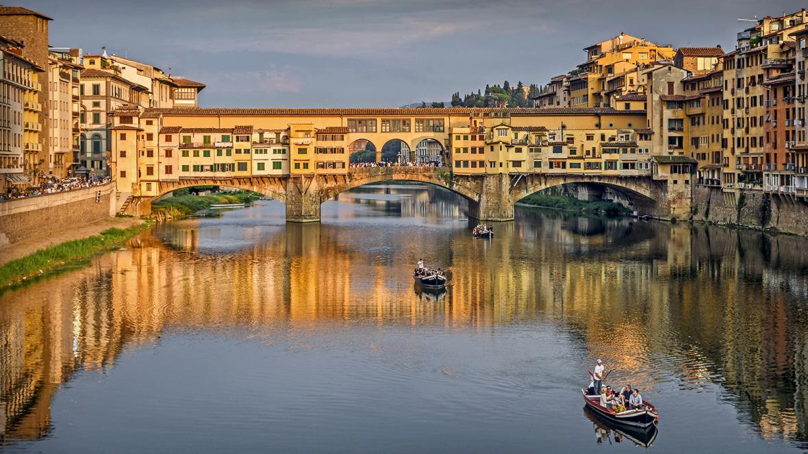 Το γραφικό Πόντε Βέκιο, το μεσαιωνικό γεφύρι πάνω από τον ποταμό Αρνο στην Φλωρεντία, χρονολογείται στο 1345 και είναι φημισμένο για τα μαγαζάκια του
