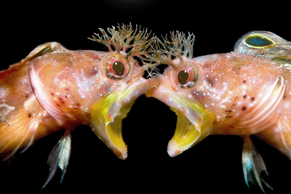 «Πρόσωπο με Πρόσωπο». Tην δεύτερη θέση στην κατηγορία «Συμπεριφορά» πήρε η αναμέτρηση δύο τροπικών ψαριών Blenny. Ο φωτογράφος κατάφερε να καταγράψει την στιγμή που τα δύο ψάρια έχουν έρθει… face to face και έτσι ονομάστηκε και η φωτογραφία. Το συγκεκριμένο είδος Blenny ζει στα νερά της Ιαπωνίας και της Νότιας Κορέας και κατά κανόνα αποφεύγει τις συναναστροφές με άλλα ψάρια του είδους του. Κατά την διάρκεια της περιόδου αναπαραγωγής, ωστόσο, και κατά την αναζήτηση ερωτικού συντρόφου, οι... συναντήσεις αντιζήλων είναι αναπόφευκτες και συνήθως καταλήγουν σε καυγάδες σαν αυτόν
