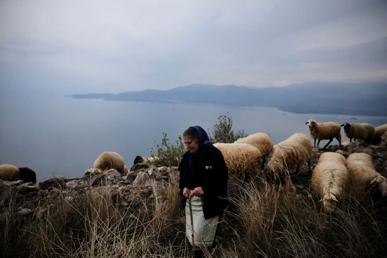 Τρίτη, 20 Φεβρουαρίου, Ελλάδα. Γυναίκα βοσκός με τα πρόβατά της σε βουνό κοντά στην Ιτέα