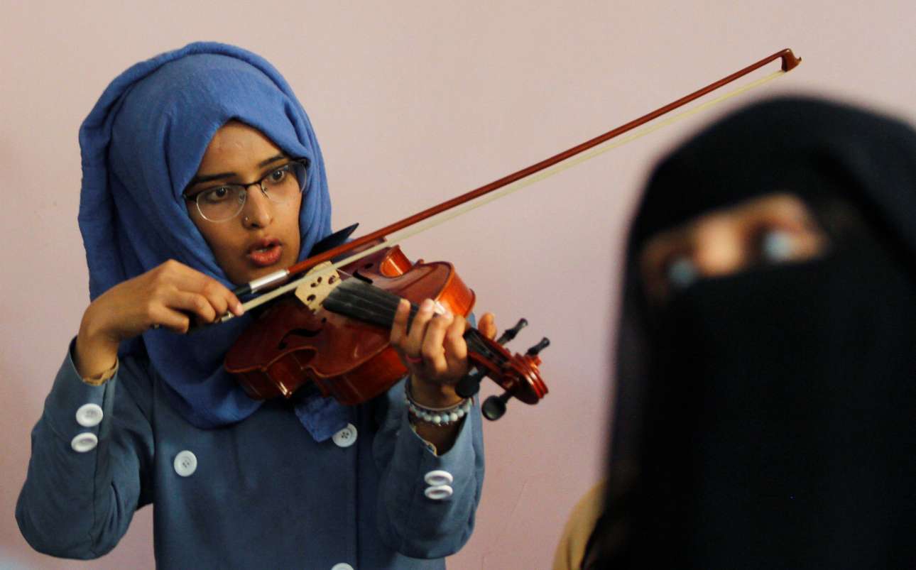 Τετάρτη, 21 Φεβρουαρίου, Υεμένη. Νεαρή παίζει βιολί κατά τη διάρκεια μαθήματος μουσικής στο Κέντρο Πολιτισμού στην πρωτεύουσα Σαναά