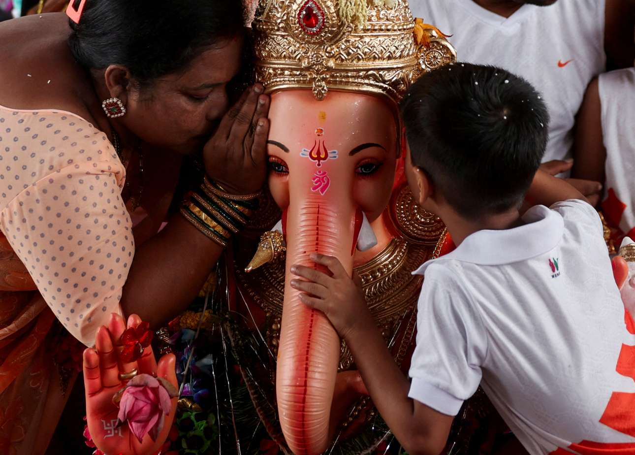Στις αυτάρες του ελεφαντόμορφου «θεού» τους οι ευλαβείς Ινδοί ψιθύρισαν να θαυματουργήσει ώστε να ελαττώσει τους δασμούς ο Τραμπ