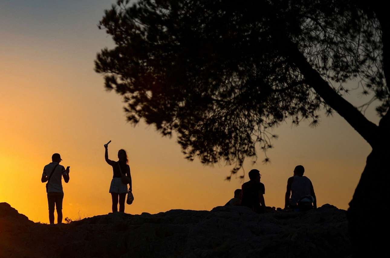 Από τα πεύκα του Φιλοπάππου υποδέχθηκαν τον Σεπτέμβριο μερικοί τουρίστες, χαζεύοντας από ψηλά το αθάνατο αθηναϊκό μπετόν