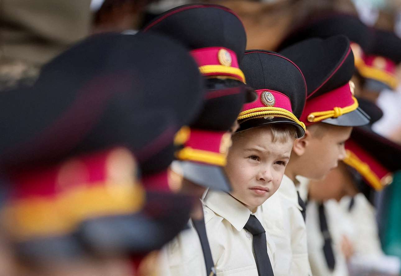 Τι είν’ τούτα εδώ τα αγουροξυπνημένα σχολιαρούδια με τα πηλίκια; Κατά το φωτοπρακτορείο, στρατιωτικοί δόκιμοι του Κιέβου