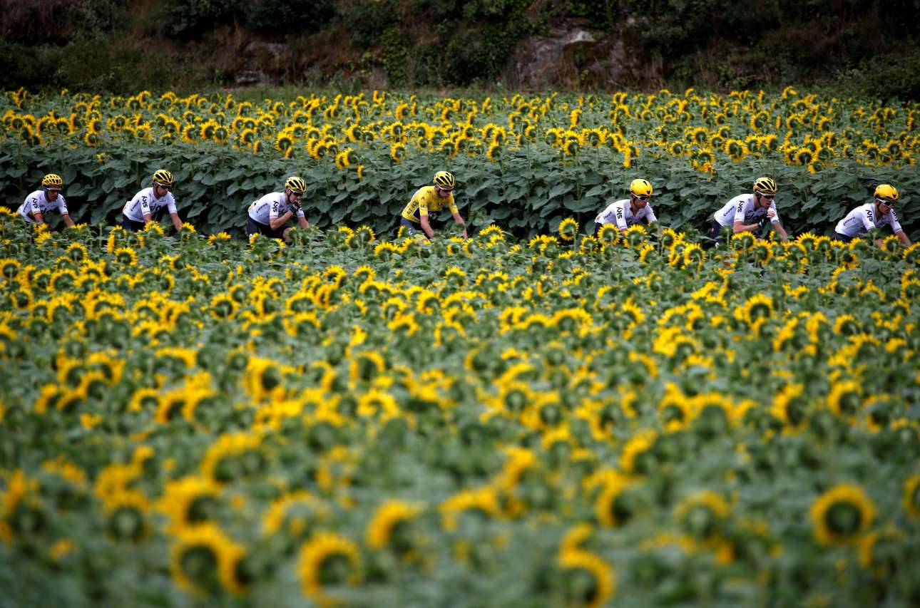 11 Ιουλ. Ποδηλατάδα μέσα στους ήλιους... στον 104ο διεθνή ποδηλατικό γύρο της Γαλλίας, στο ύψος του Περιγκέ, στη νοτιοδυτική χώρα