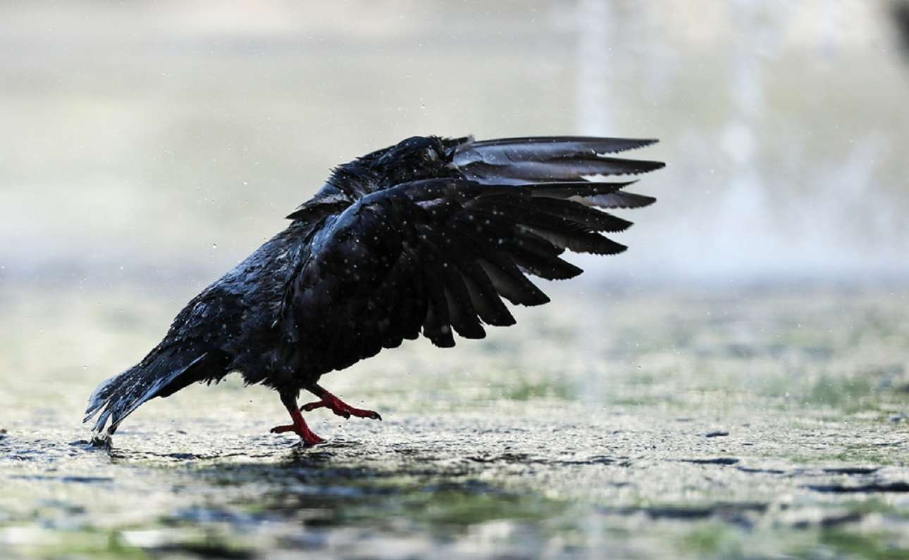 Κλικ από τη Φραγκφούρτη με πτηνό που δροσίζεται σε στέρνα: αλίμονο, δεν πρόκειται για τον γερμανικό μαυραετό αλλά για περιστέρι