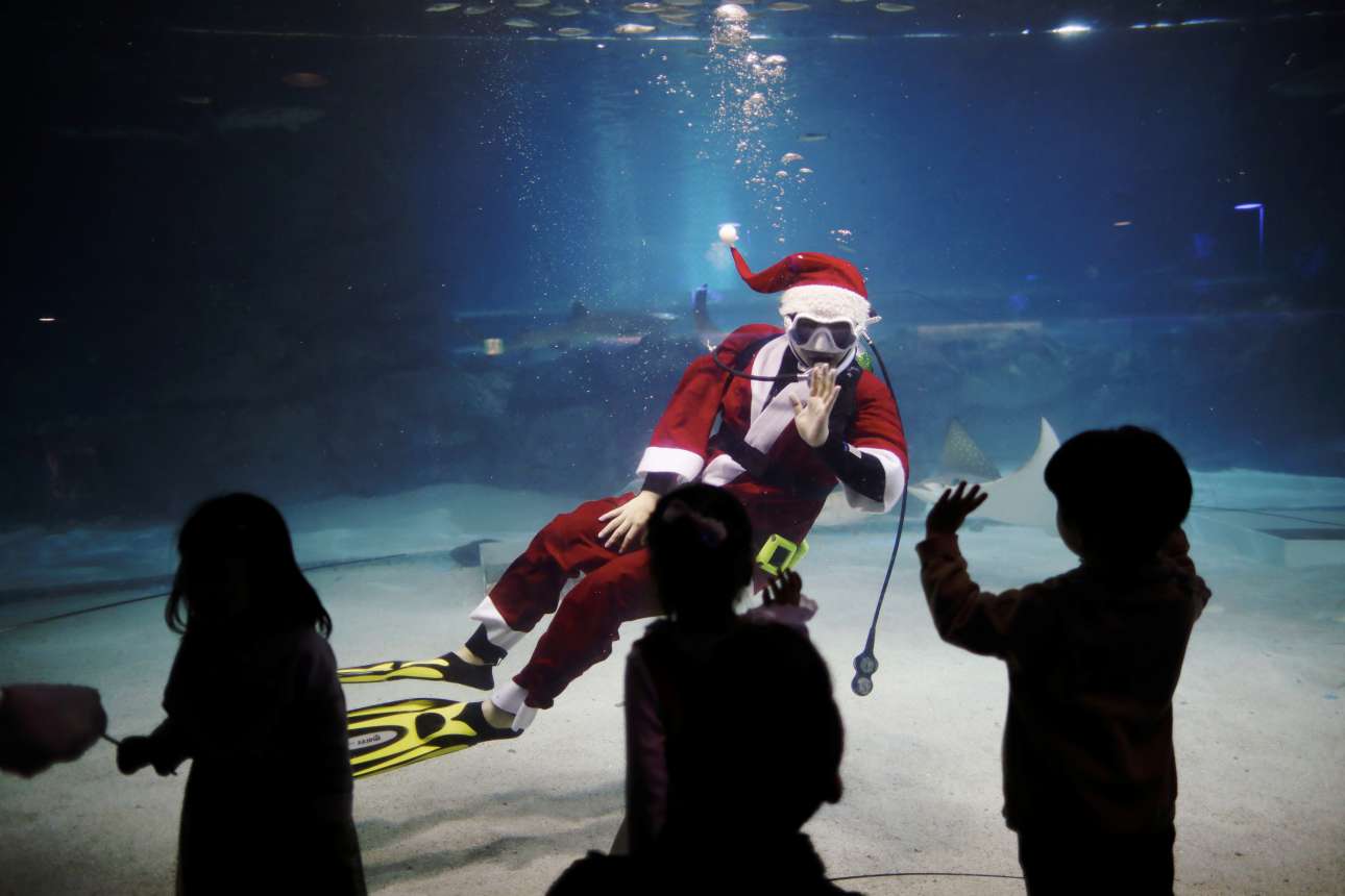 Δευτέρα, 11 Δεκεμβρίου, Νότια Κορέα. Δύτης ντυμένος Αγιος Βασίλης συμμετέχει σε χριστουγεννιάτικη εκδήλωση του ενυδρείου Coex, στη Σεούλ